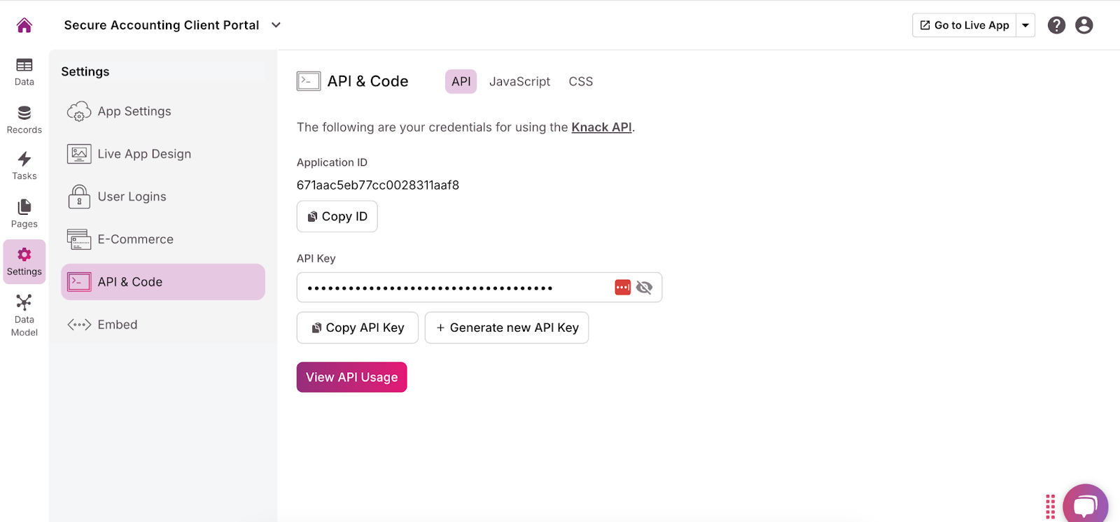 - Add any necessary integrations, like QuickBooks, Xero, or PayPal, using the “API & Code” option in the “Settings” menu. For more guidance, read this Introduction to the API article.