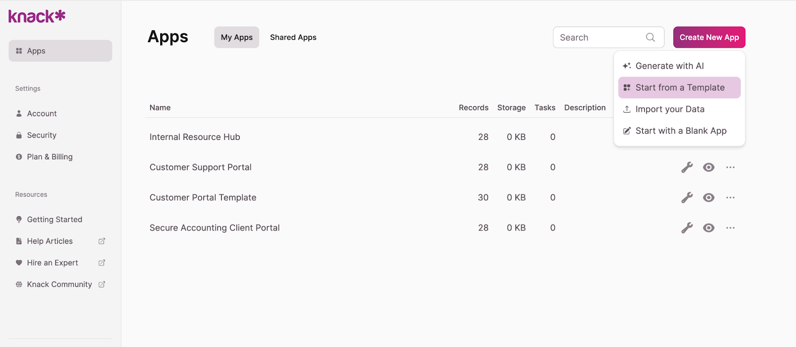 Knack offers a free AI app builder that simplifies development. You can use it to build your accounting client portal in a few simple steps: