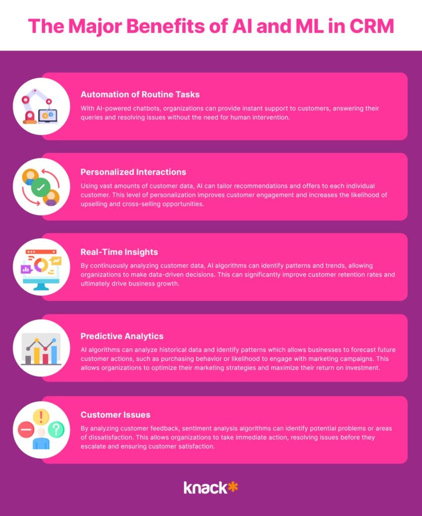 One of the key benefits of AI and ML within CRM builders is the automation of routine tasks. With AI-powered chatbots, organizations can provide instant support to customers, answering their queries and resolving issues without the need for human intervention. This not only saves time and resources but also enhances customer satisfaction by providing quick and efficient service.