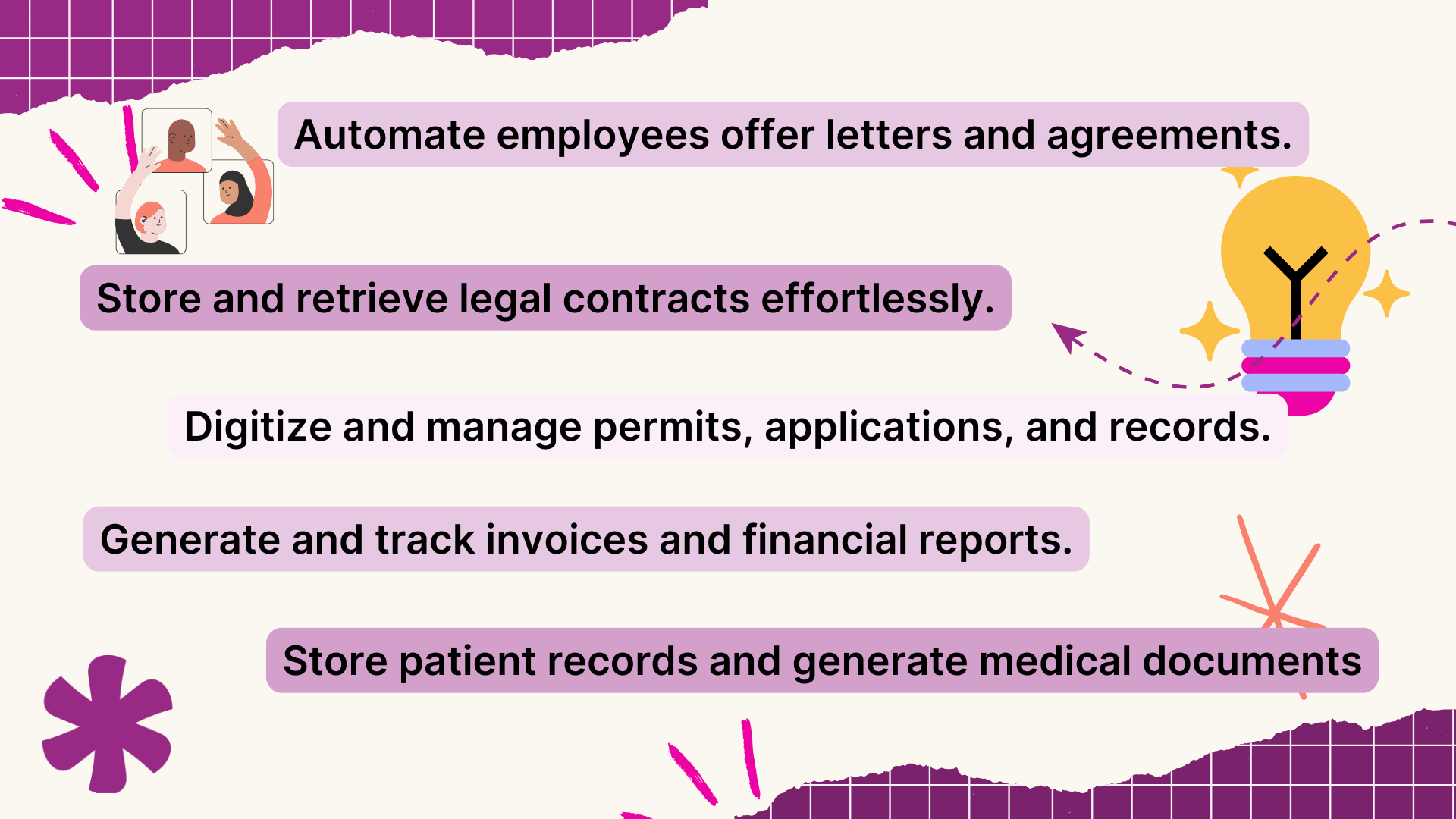 - Government Agencies: Digitize and manage permits, applications, and records.