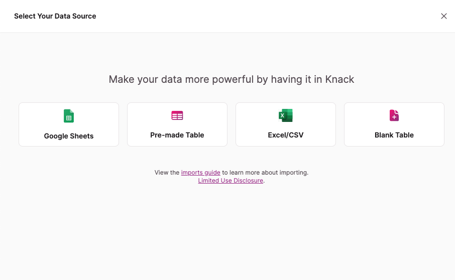 Yes, you can import your data into Knack using formats like .CSV, .XLS, .XLSX, and Google Sheets.