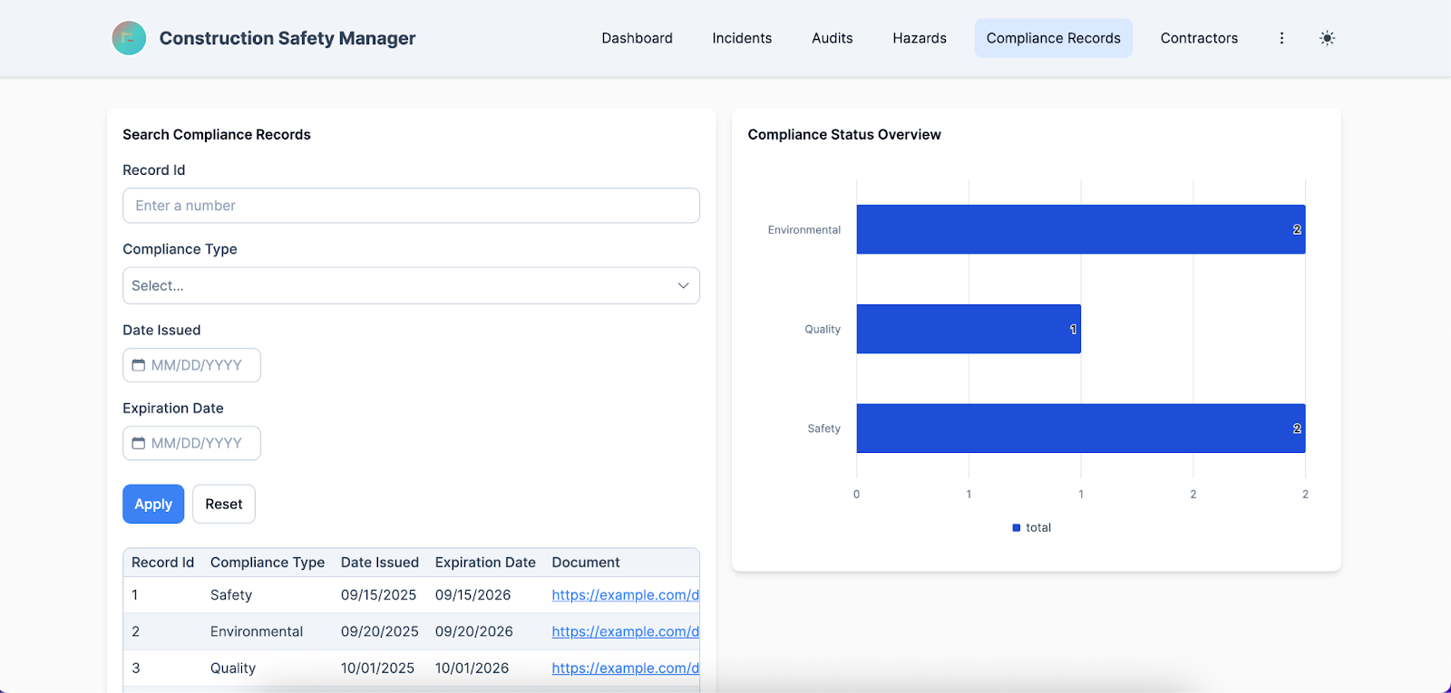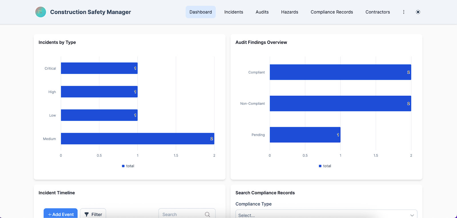 - Limited visibility across sites – Without centralized tracking, managers lack real-time insight into safety performance and compliance across multiple job sites.