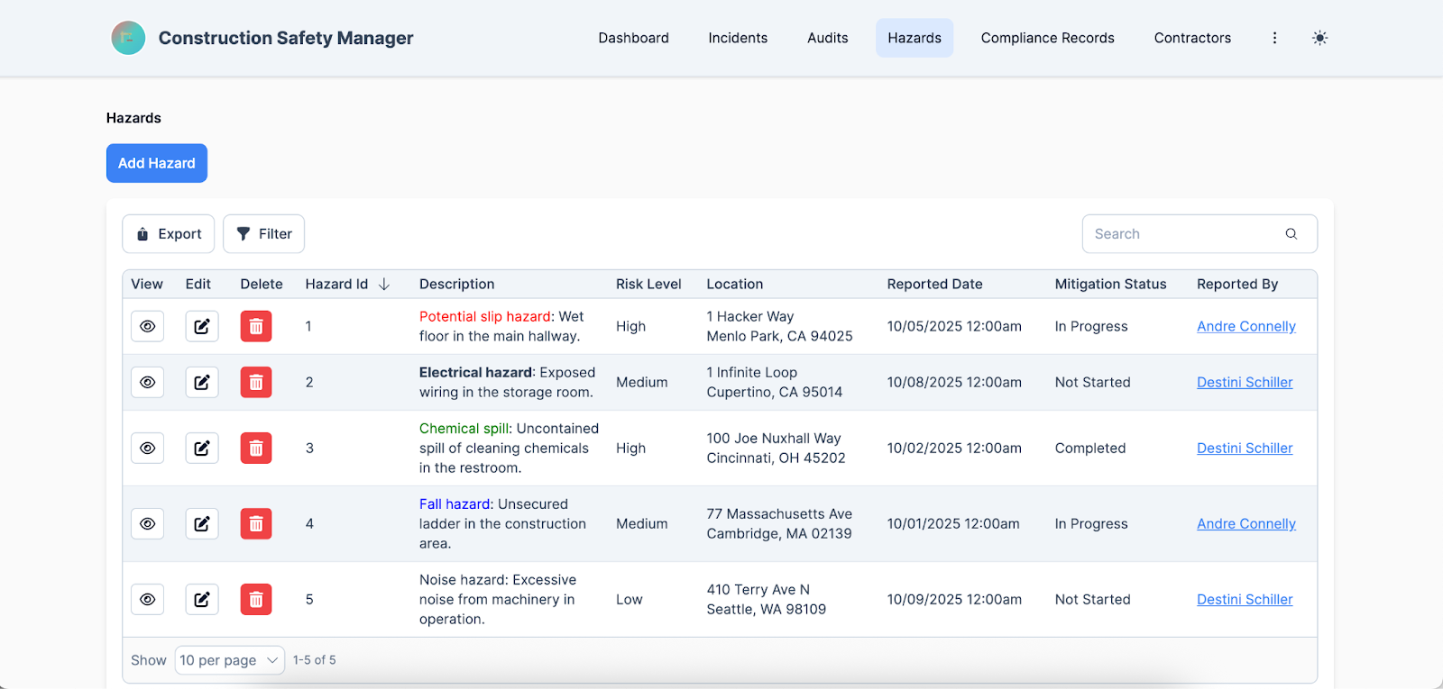 When a hazard is logged, these systems can assign a risk score based on severity and likelihood, helping prioritize the most critical issues first. Once identified, the platform makes it easy to assign a team member to address the issue, set deadlines, and track progress in real time—all within a centralized, easily accessible location—ensuring accountability and reducing the likelihood of incidents.