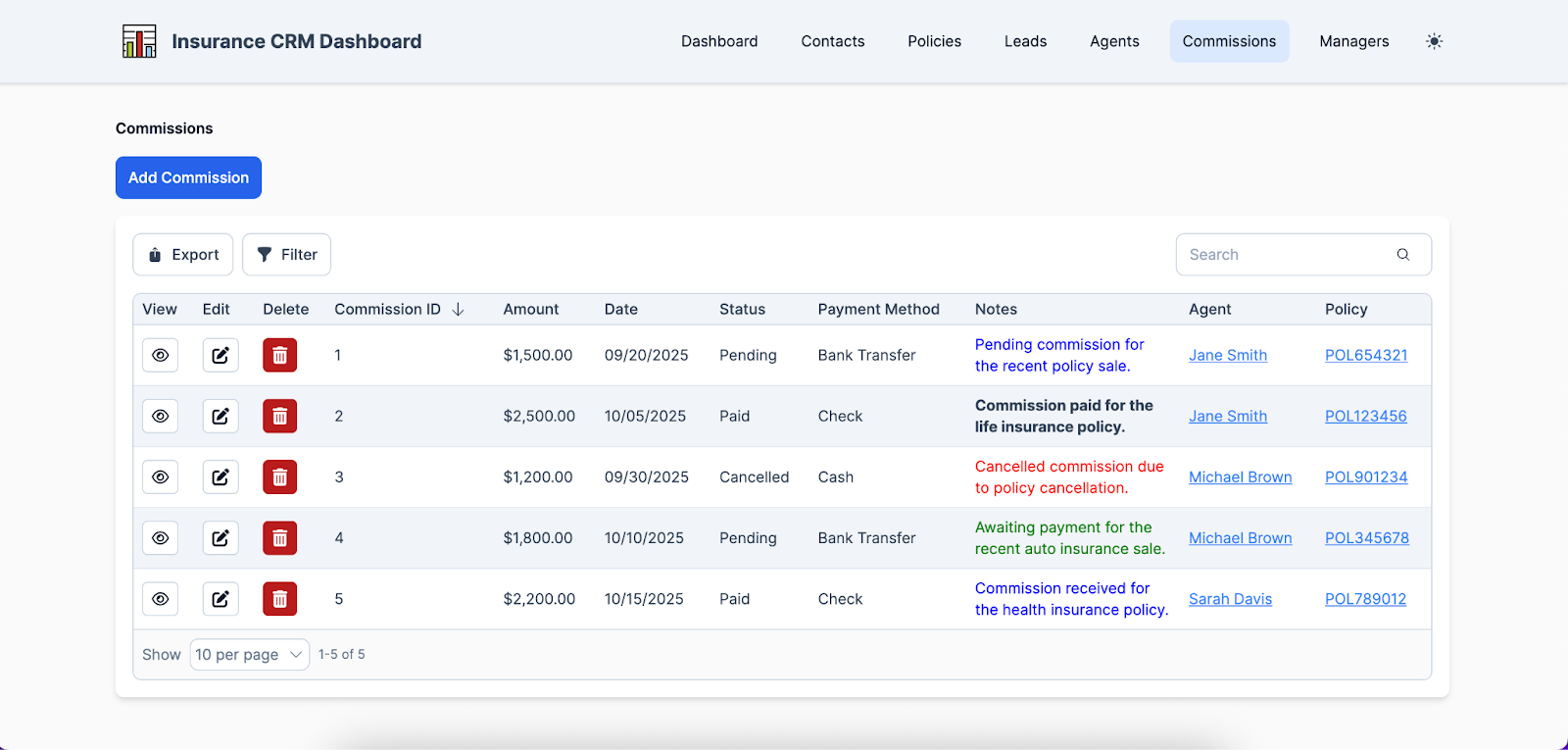These systems can break down commissions by carrier and line of business, giving agents and managers a clear view of earnings across different products and policies. Many CRMs also offer integrations with carrier systems or the ability to mirror commission statements, ensuring accuracy and reducing the need for manual calculations, while providing a transparent, real-time view of each agent’s performance and compensation.