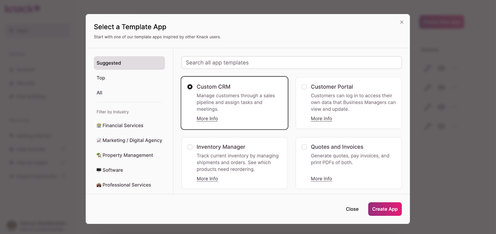 Knack has a library of pre-built template applications to help you get started: