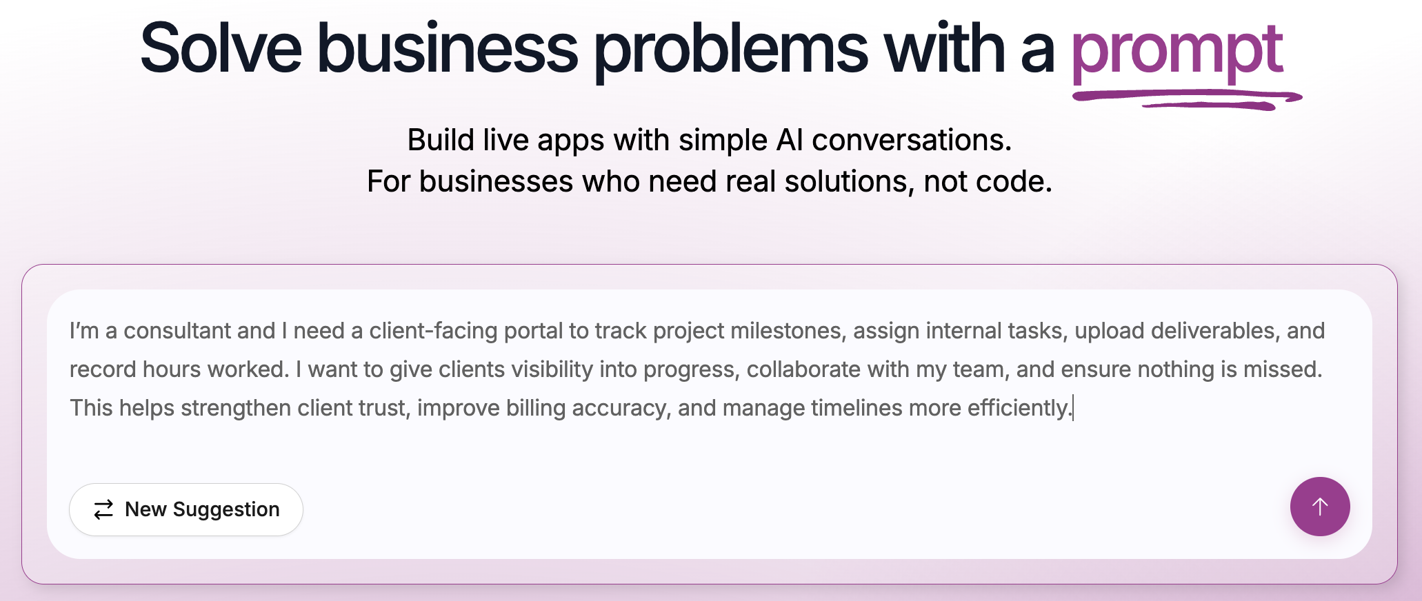 We’ve combined this milestone launch with the 100% rollout of Next-Gen Apps, which provides a modernized interface, more intuitive no-code builder, and enhanced app theming and design features. Even our homepage has gotten a makeover, reflecting our new app experience and updated positioning that emphasizes our focus on customer outcomes — i.e., businesses being able to solve their problems with a prompt.