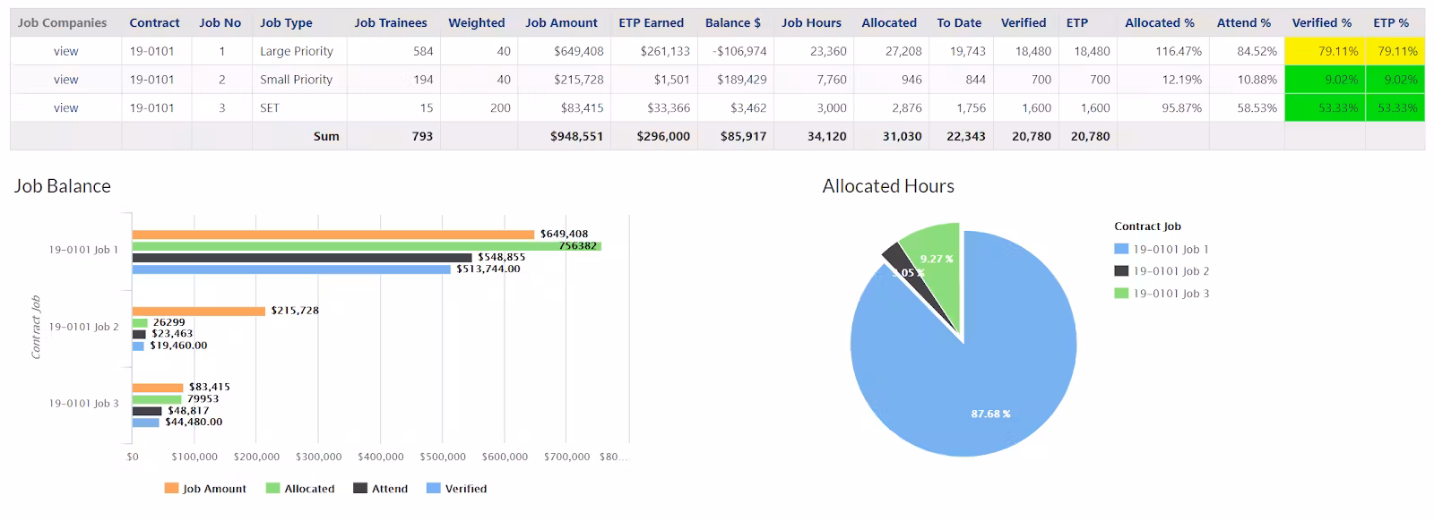 ETP is a performance-driven program, not a grant. The college receives reimbursed if they meet 100% of the panel’s requirements. El Camino College tracks that data in Knack to ensure the employers are meeting a wage requirement, getting 100% attendance, and ensuring trainees are still employed 90 days after the course ends.