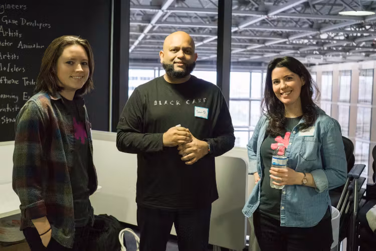 Sean chats with Knacksters Danielle and Jessie at a Knack Meetup in Austin.