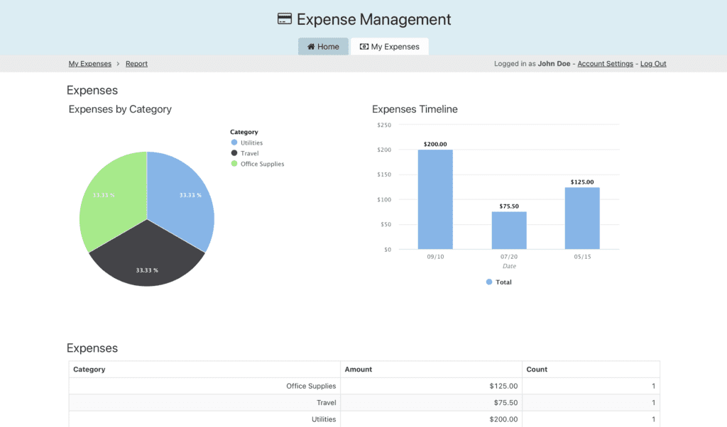Submit expense reports for approval and track their status in real time. Admins can review, approve, or reject reports quickly, ensuring accountability and timely processing in every aspect of the project.