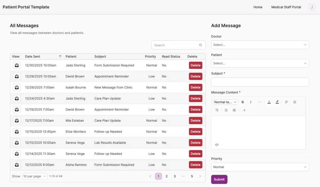 From patient portals to administrative suites and custom dashboards, Knack lets you tailor data workflows and user experiences without sacrificing maintainability.