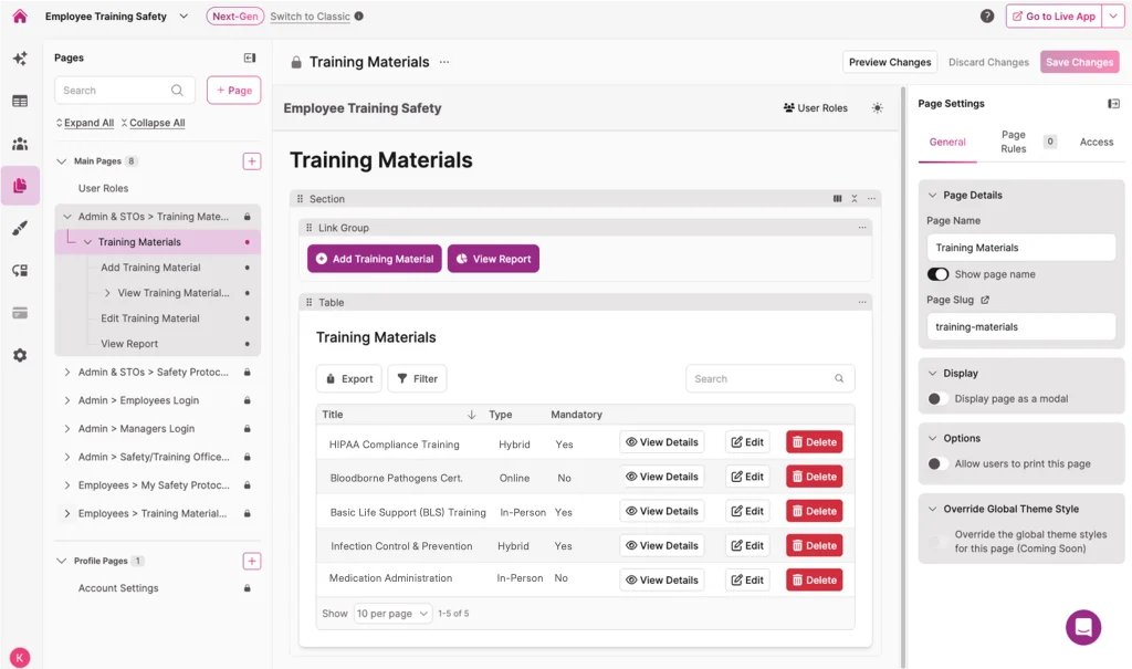 Knack’s builder is designed to create full healthcare applications with secure user accounts, relational data, and complete workflows, not just modular pieces. Plus, Knack apps are production-ready from day one, with databases, user roles, workflows, and interfaces all integrated in an enterprise-ready stack.