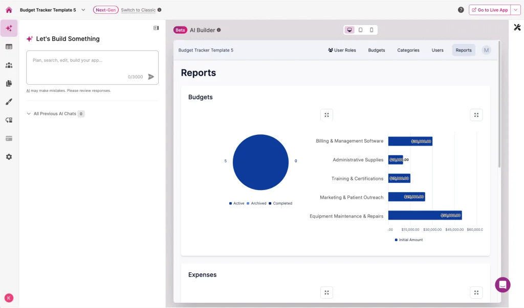 Knack’s AI-assisted builder and intuitive UI let non-technical healthcare teams build full apps with logic, forms, dashboards, and permissions without developer help.