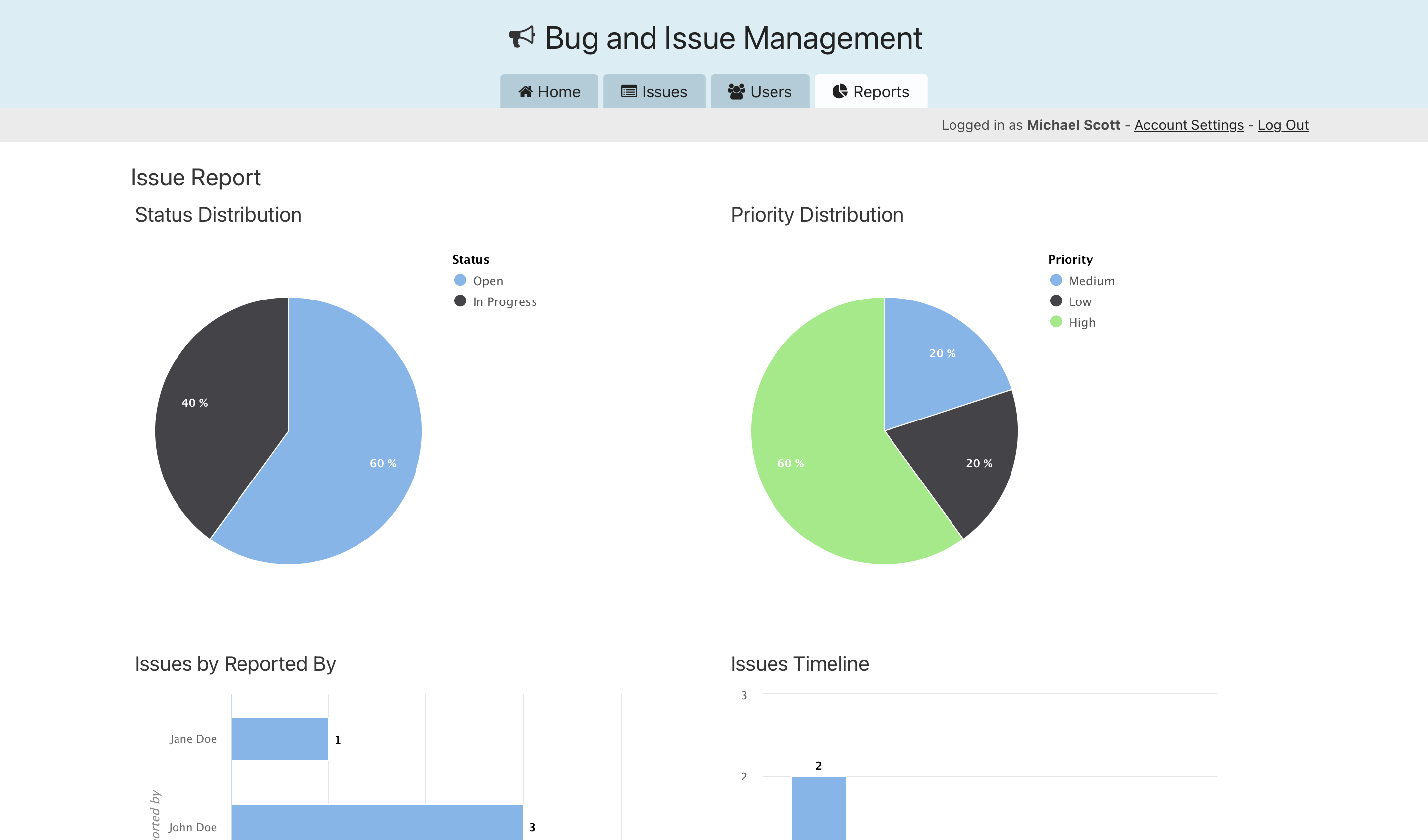 - Dashboard for Project Managers: Project Managers can view project-specific statistics, active issues, and team performance.
