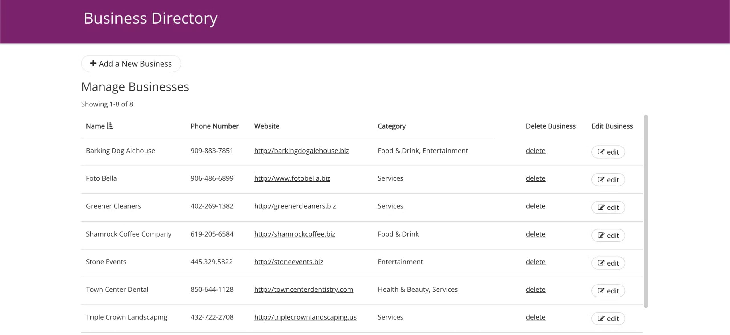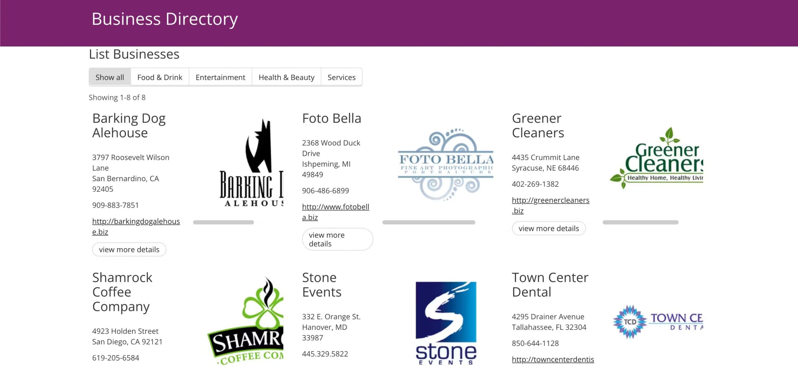 Easily search and view businesses in a directory.
