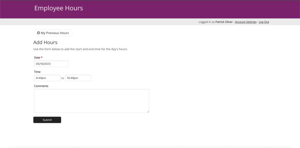 This employee hours demo is a simple app where employees can log in and track their hours.