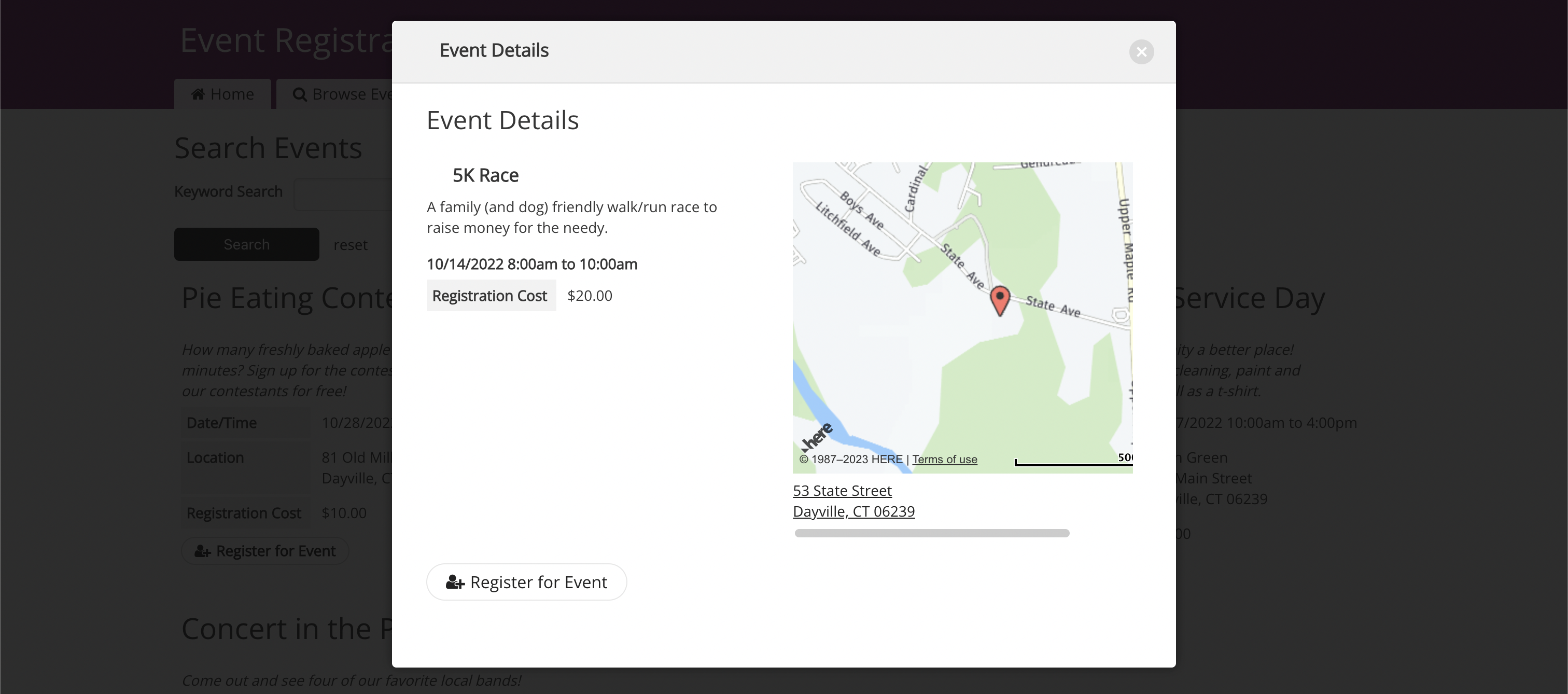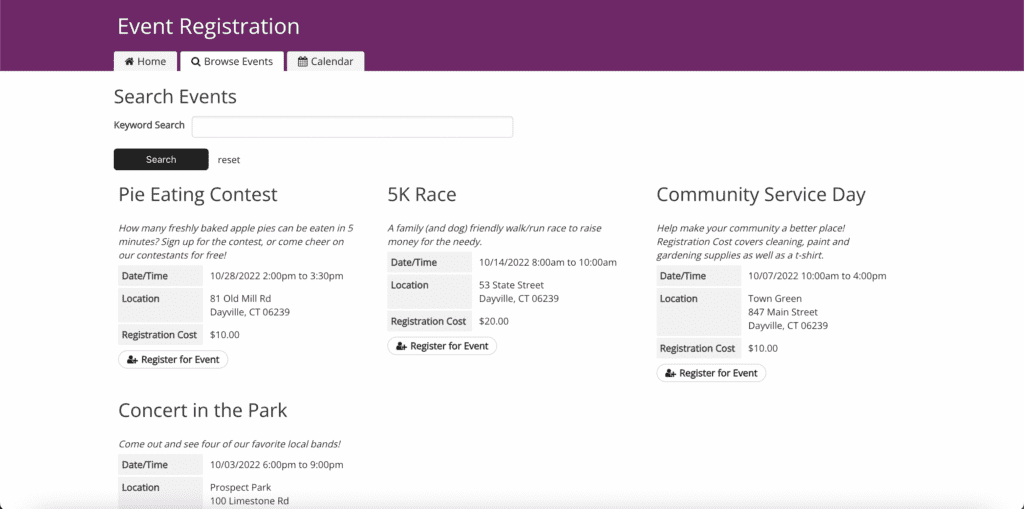 • Paid registrations – Built-in e-commerce features let users pay for their spot directly from the application.