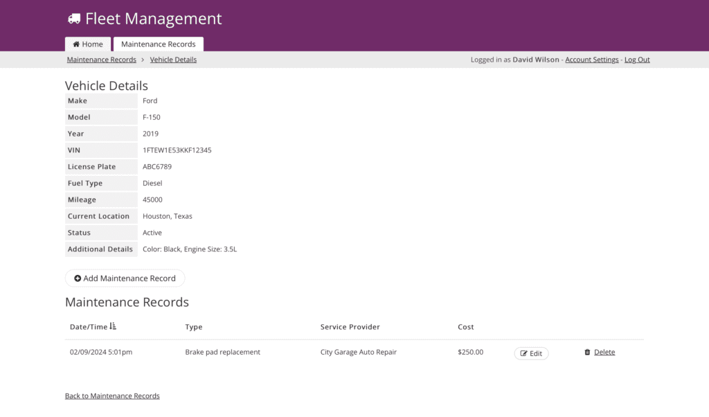 - Maintenance Record Management: Maintain a comprehensive record of vehicle maintenance history, including service dates, types of maintenance performed, and associated costs.
