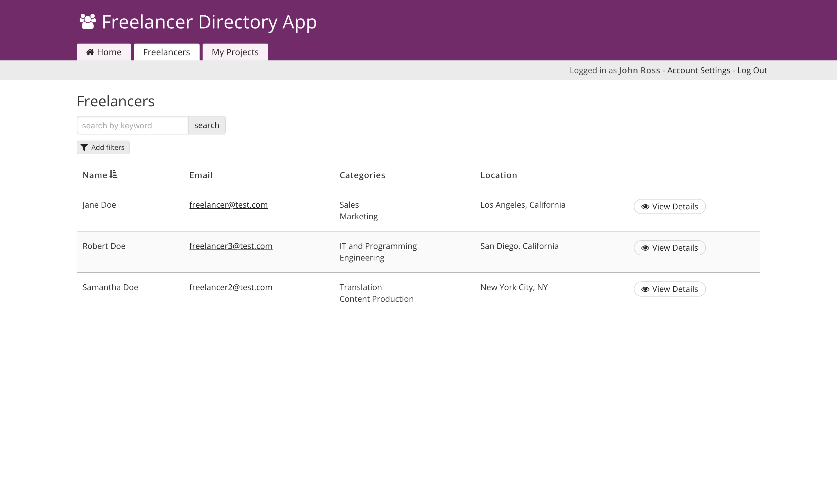 • Allows companies to browse freelancers conveniently, sorted by categories.