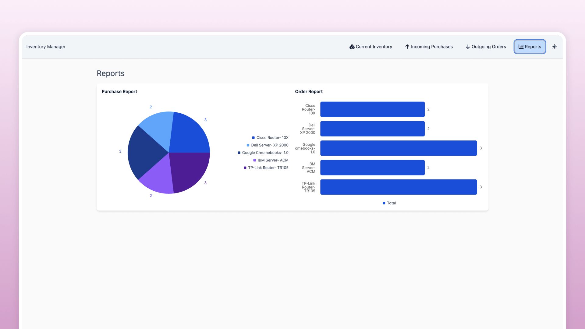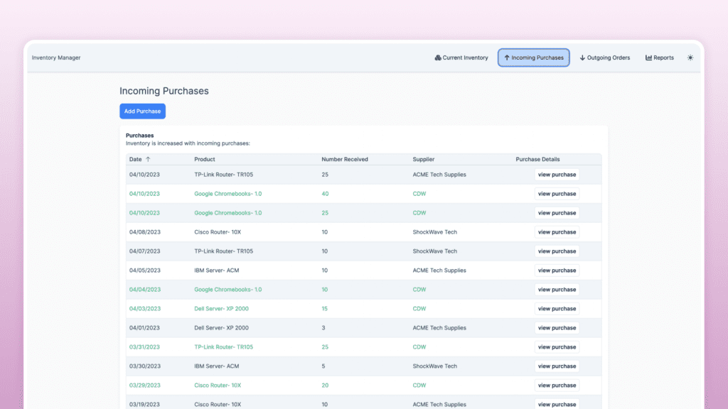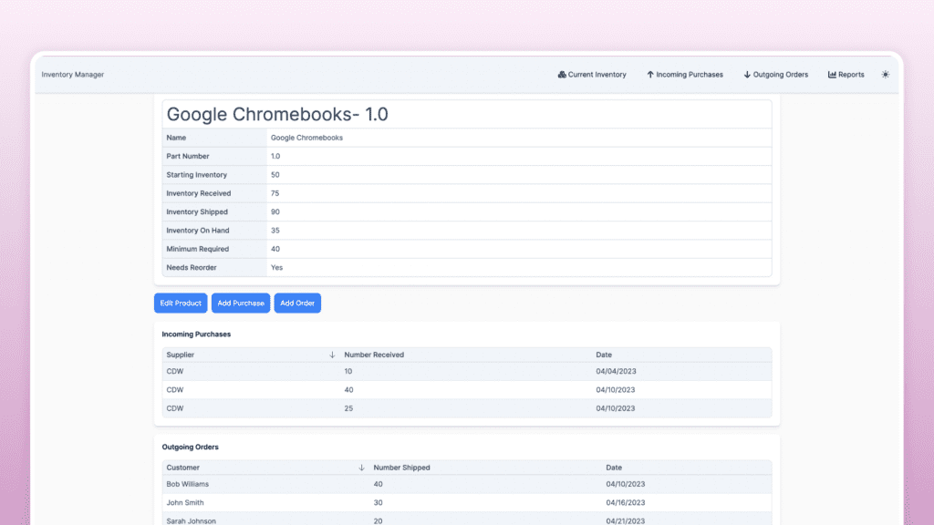 Easily track current inventory, shipments, and ordering.