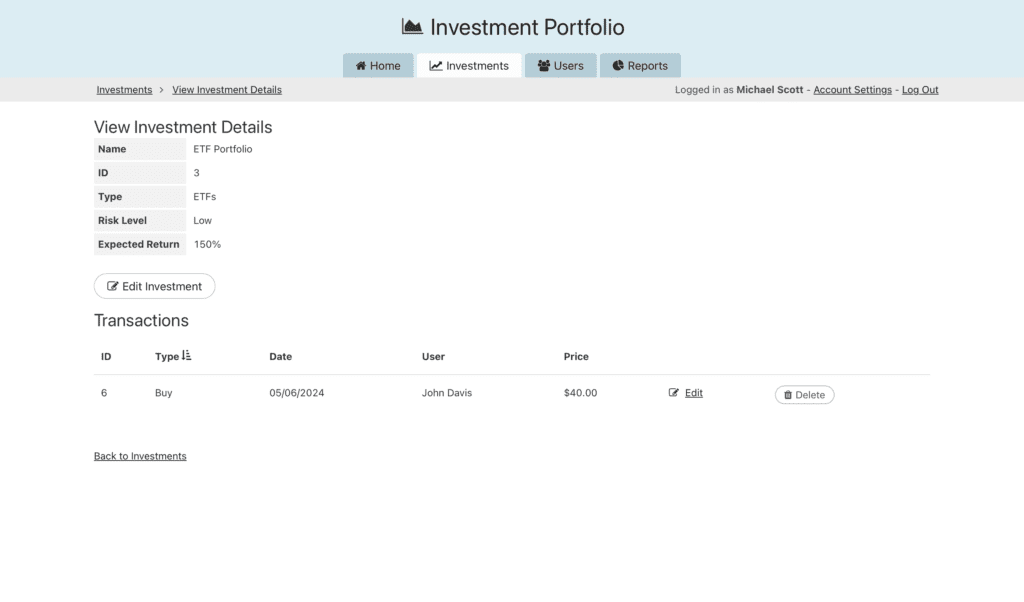 • Transaction Tracking: Facilitates easy recording and detailed tracking of buy/sell transactions for various investment types, including comprehensive history logs. This function ensures that all changes to the stock portfolio are meticulously documented and easily retrievable.