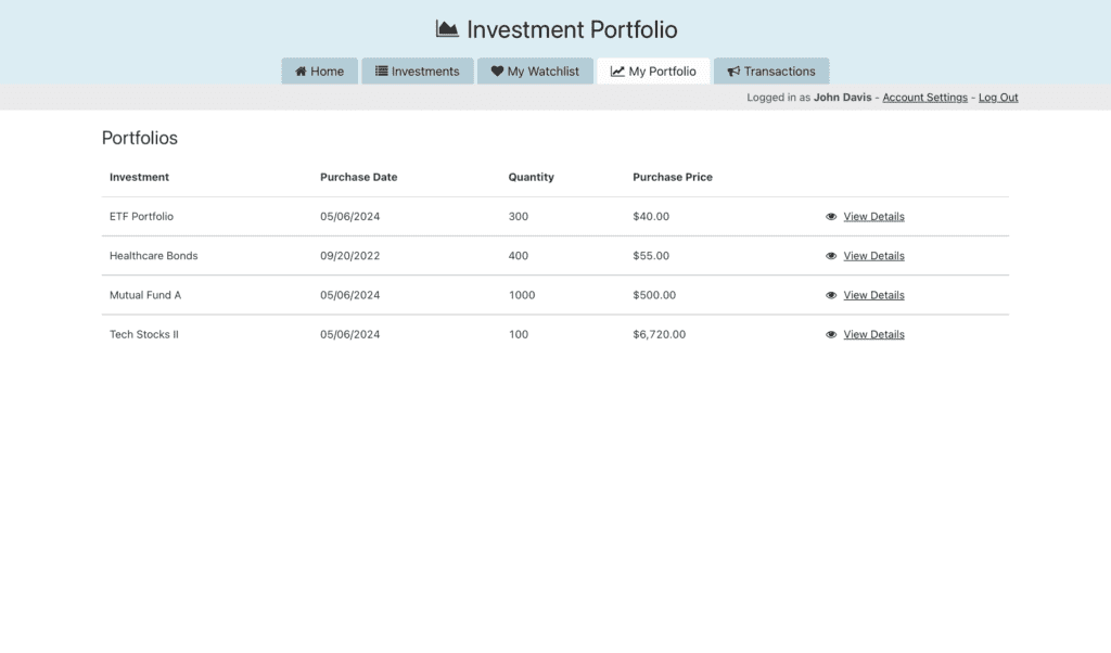 • Streamlined User Experience: The intuitive interfaces and structured workflows ensure that even novice investors can navigate the web app with ease, while experienced traders can utilize the advanced features to enhance their investment strategies.