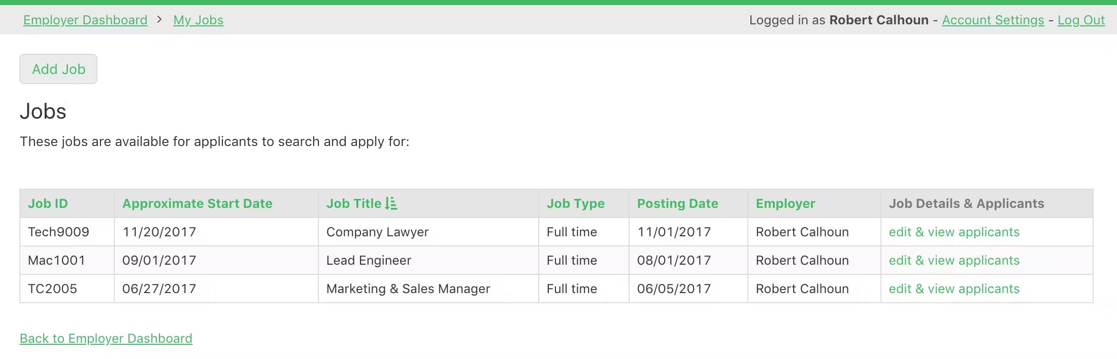 Create a portal for employers to post jobs for applicants.