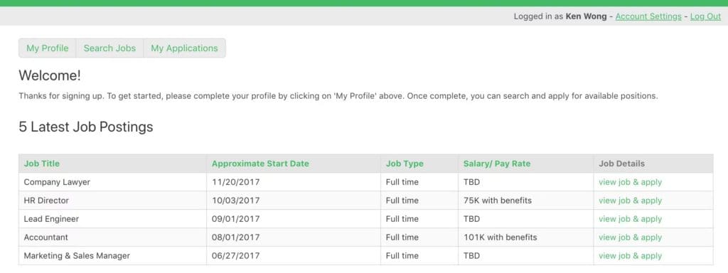 • Self-serve – Both companies and applicants manage their profiles, jobs, and applications with no administration needed.