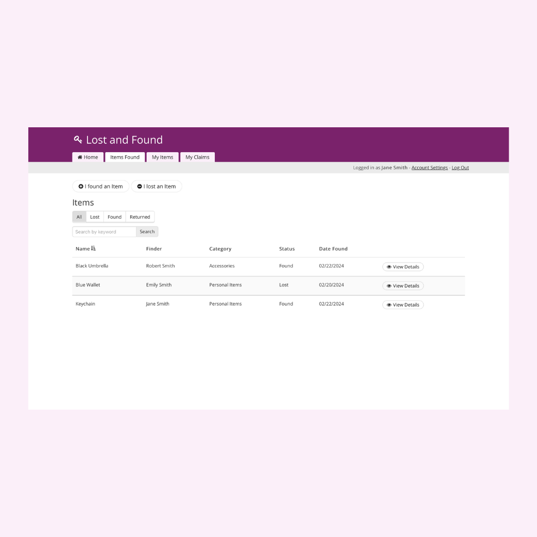 • Search for and claim items: Allow users to search for and claim items that they believe belong to them. This improves the overall user experience and satisfaction.