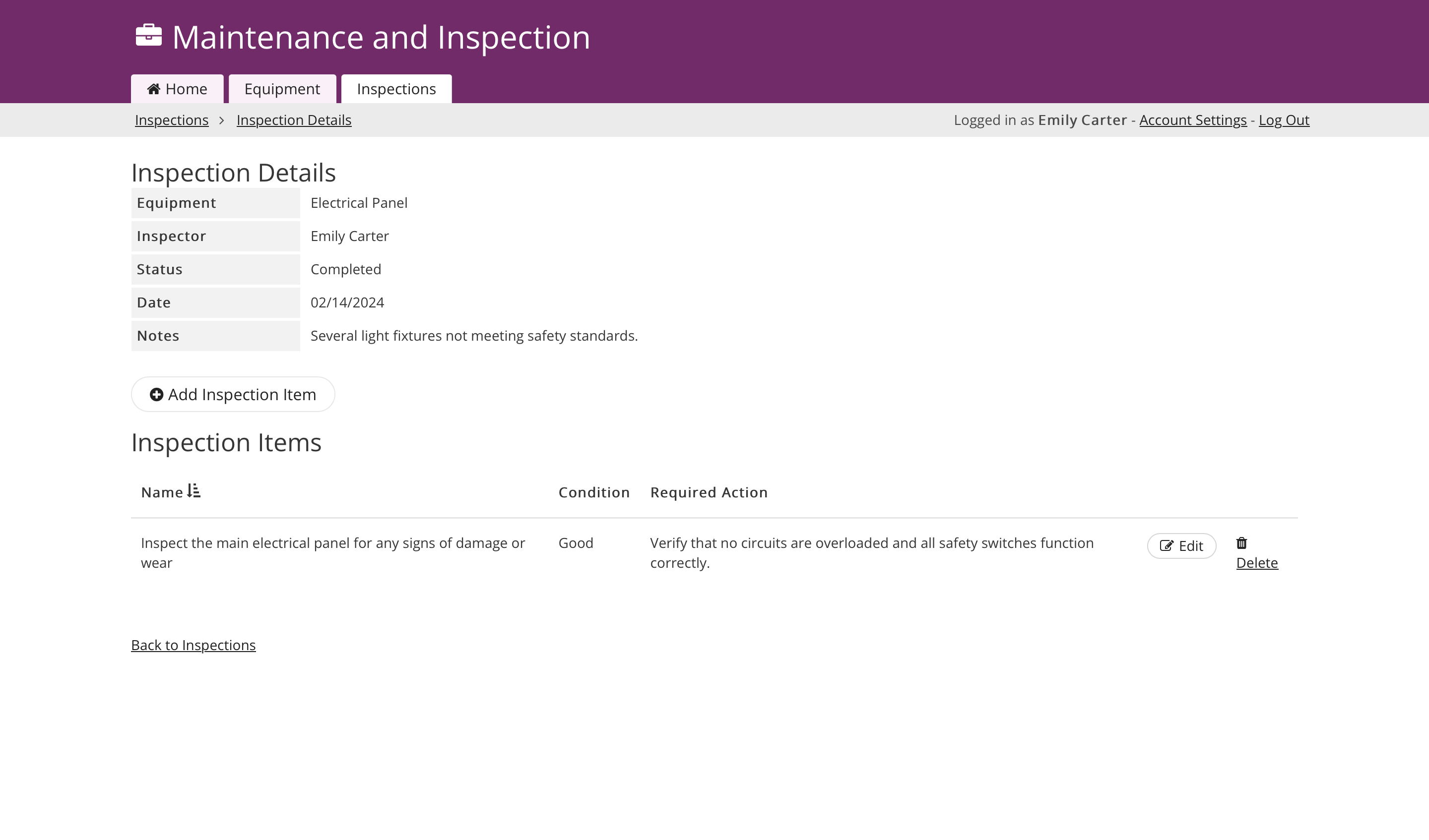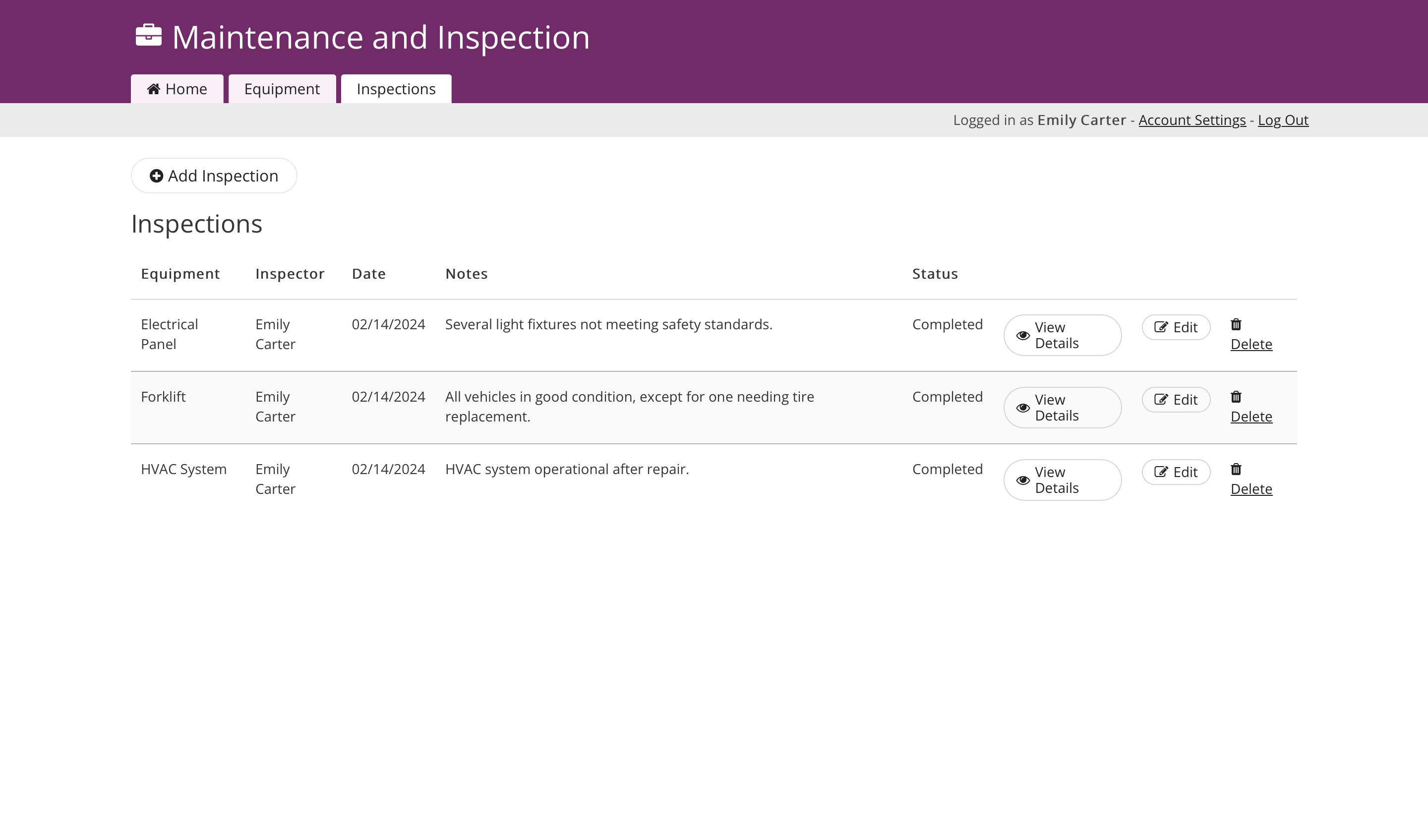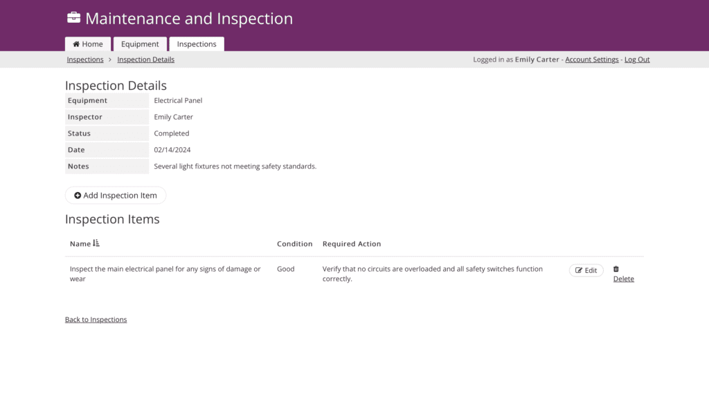 Maintain detailed inspection logs and compliance reports to meet regulatory requirements. Use role-specific access to ensure Inspectors can log findings directly, while Admins can oversee and generate reports.