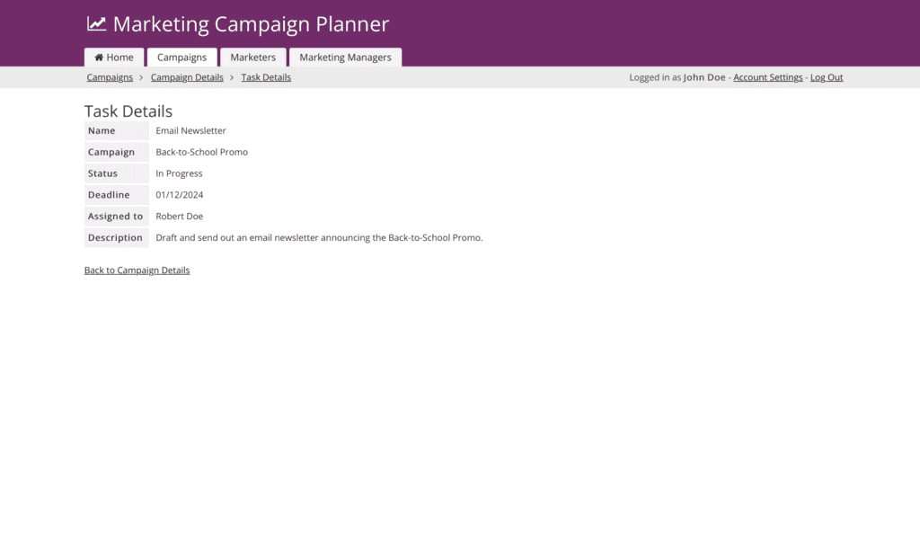 • Collaboration Tools: Enable communication and collaboration among team members through commenting, messaging features, and a notification system for task assignments, deadlines, and campaign approvals.