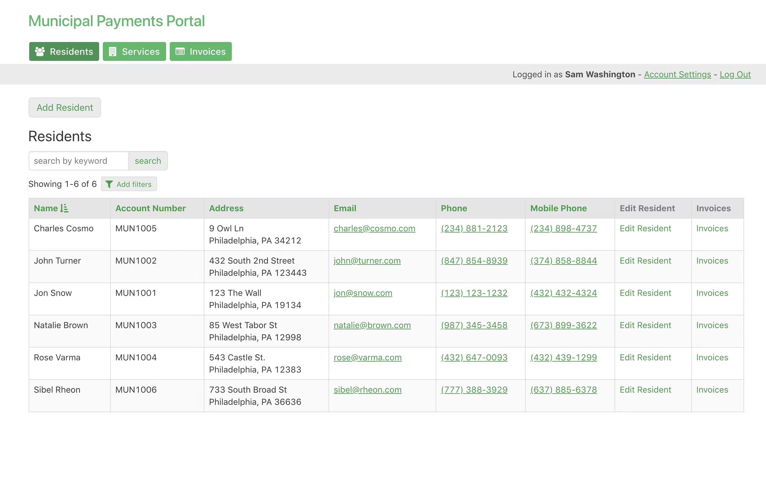 Using their account number, residents can look up their account statements and select an invoice to pay.