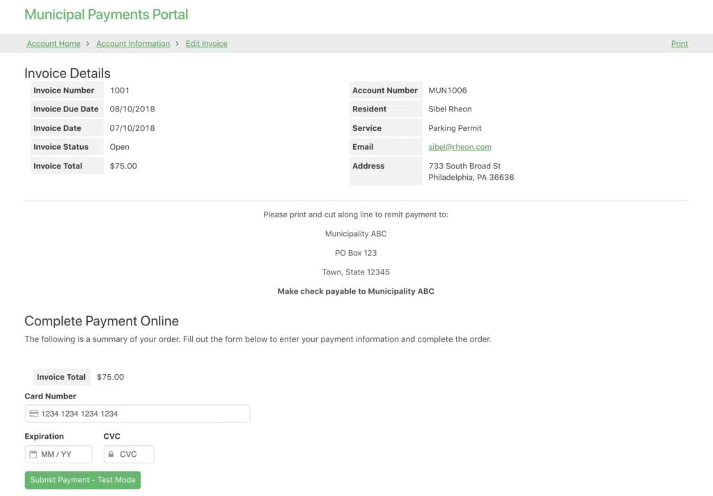 • Leverage payment and e-commerce tools within your app to offer flexibility. Make online payments, or print and mail payments to the municipality.