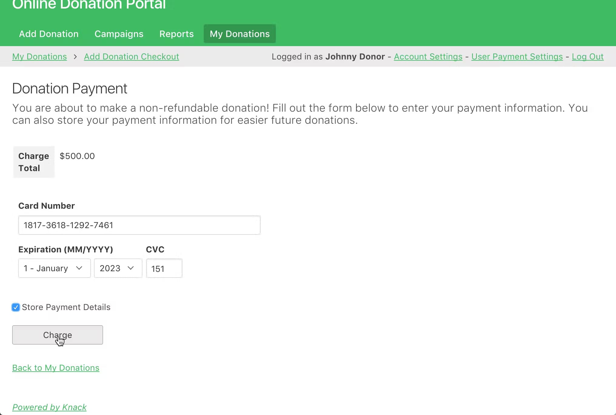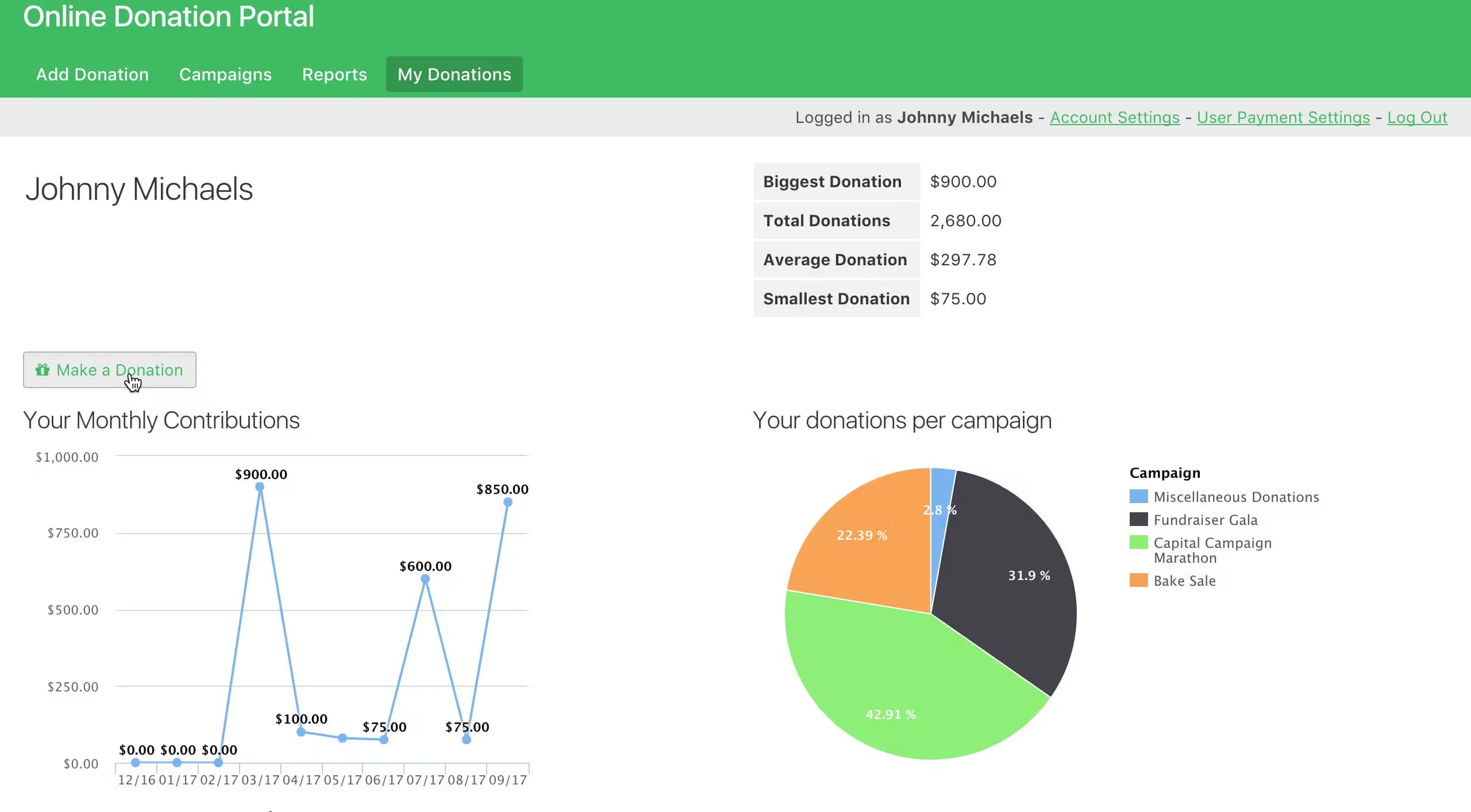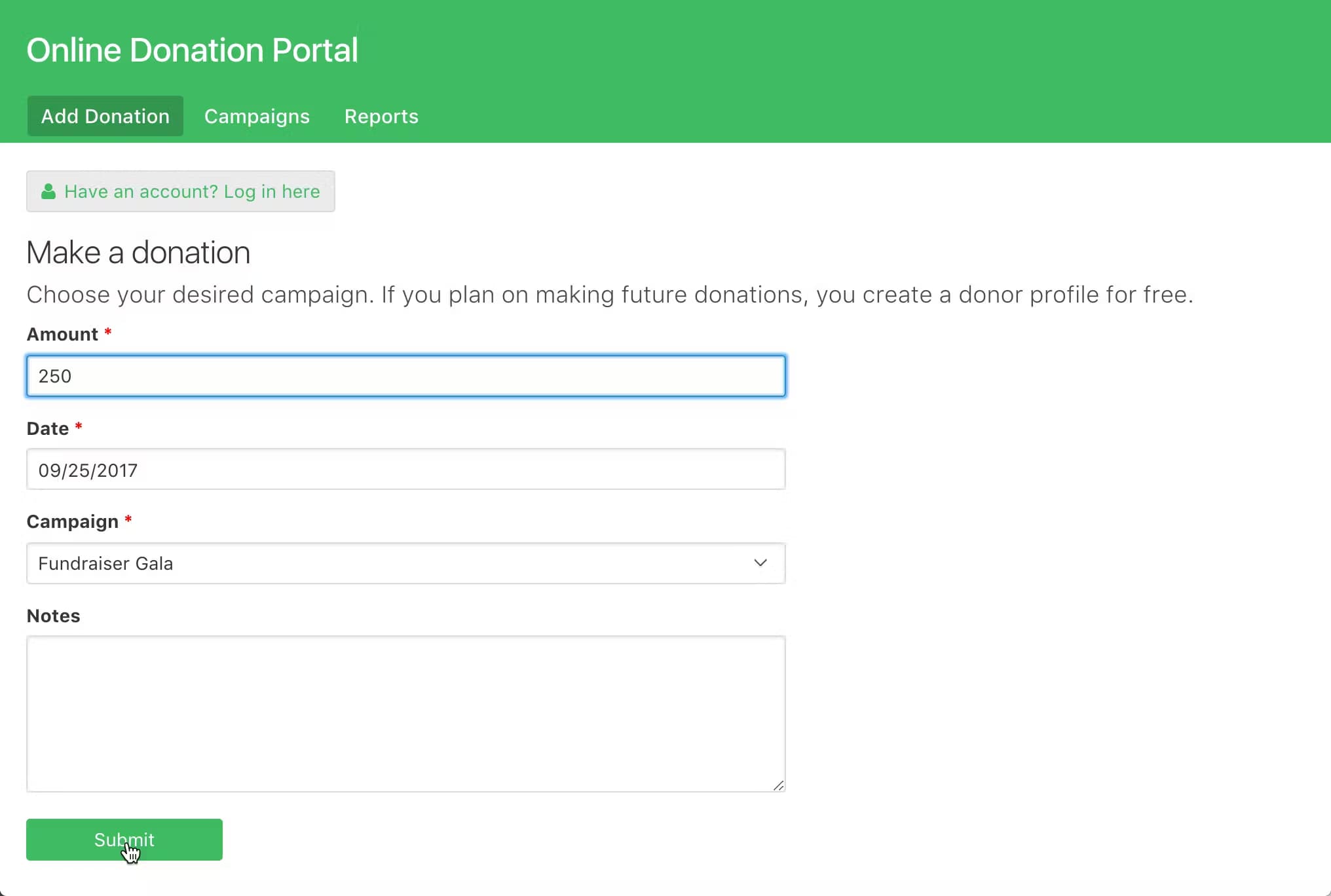 • Donor profiles – Donors can create an account so they can track past donations and access personalized reports.