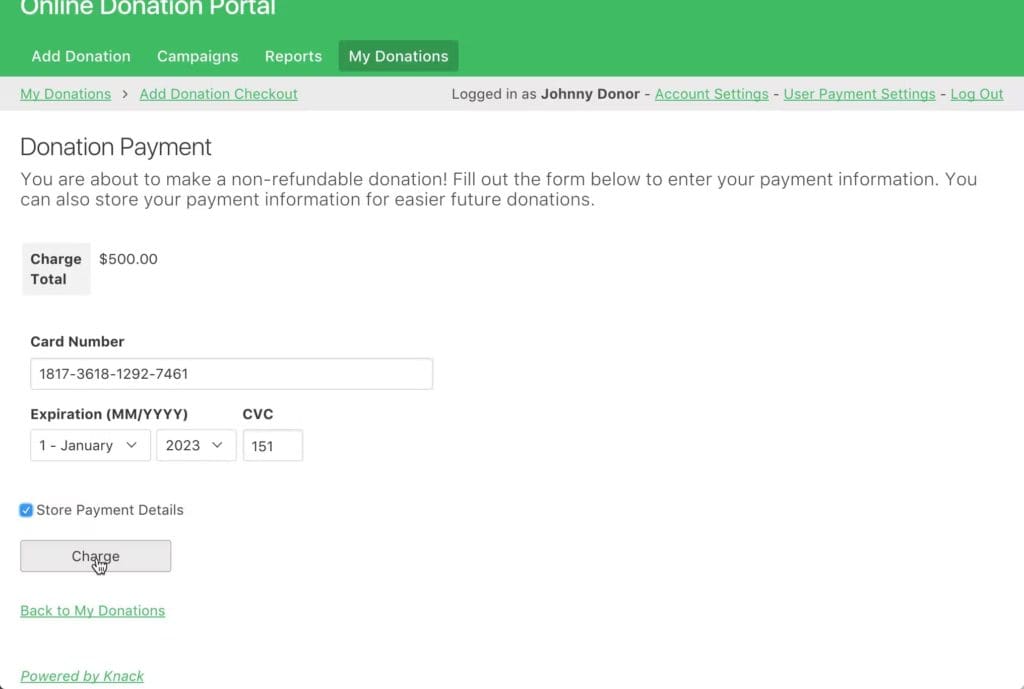• Save time by building a flexible Knack app that allows your donors to easily make their own donations, reducing administrative overhead.