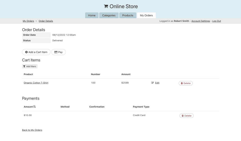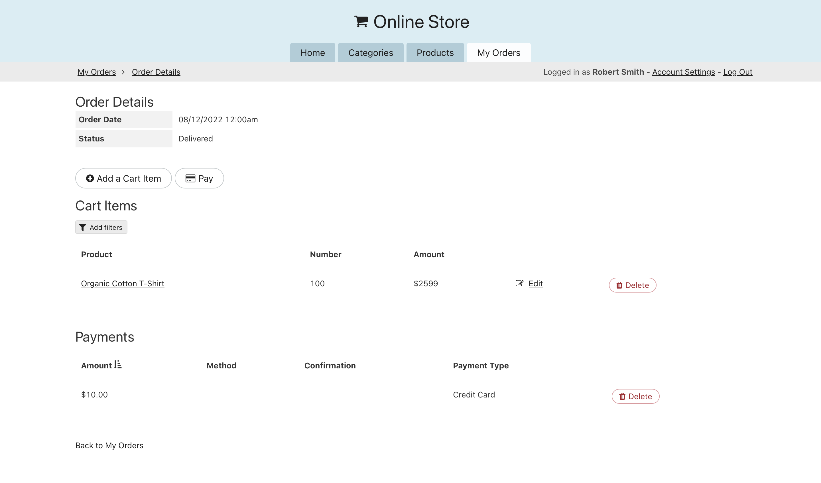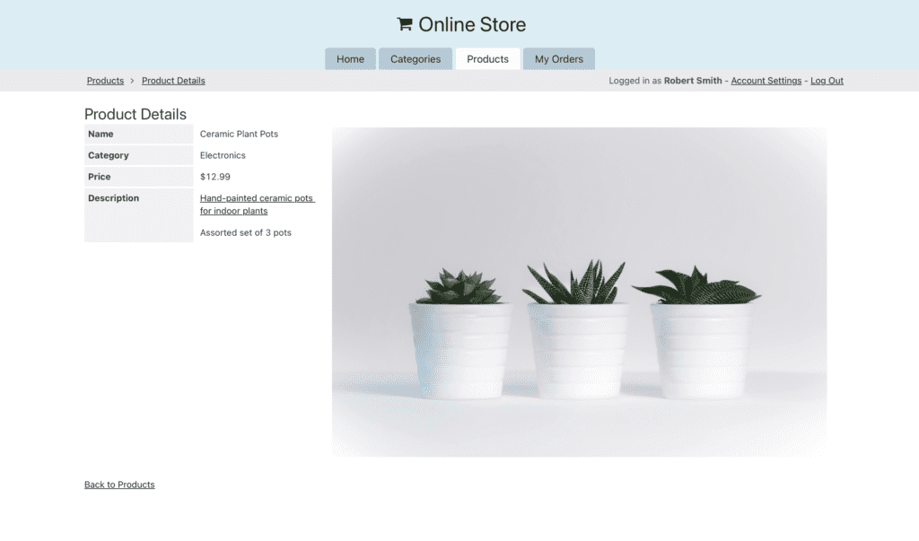 • Product Catalog Management: Add, edit, and delete products with details like name, description, price, and stock quantity. Categorize products into nested categories for easy browsing.