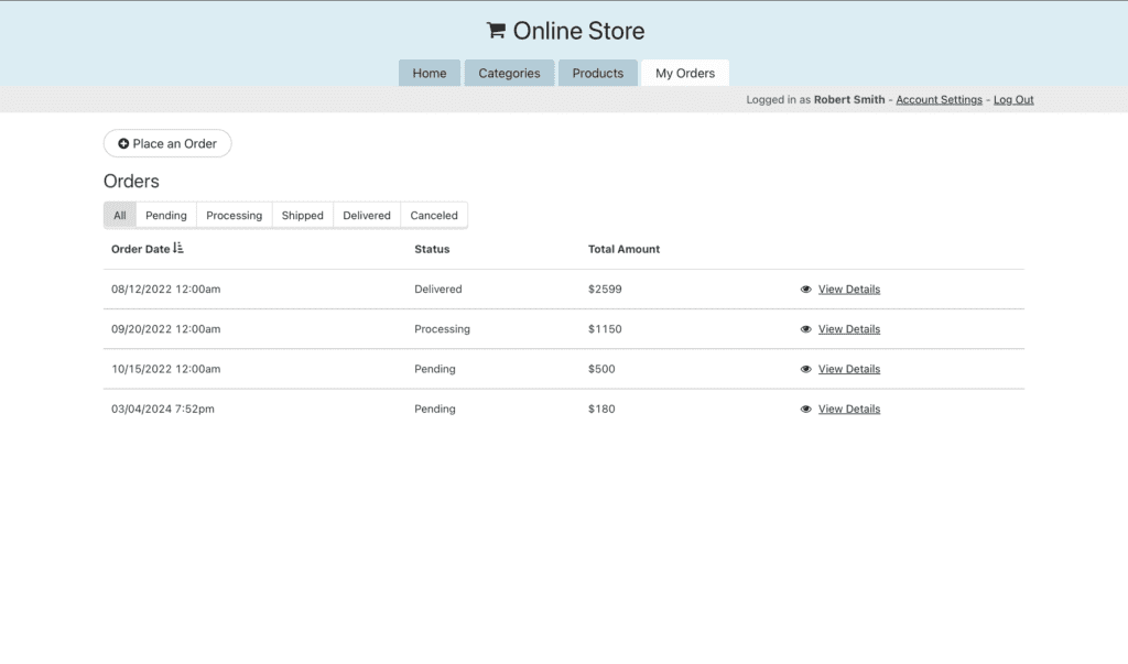 • Order Management: Track orders from placement to delivery. Update order statuses (e.g., processing, shipped, completed). View detailed order history and status by customers and administrators.