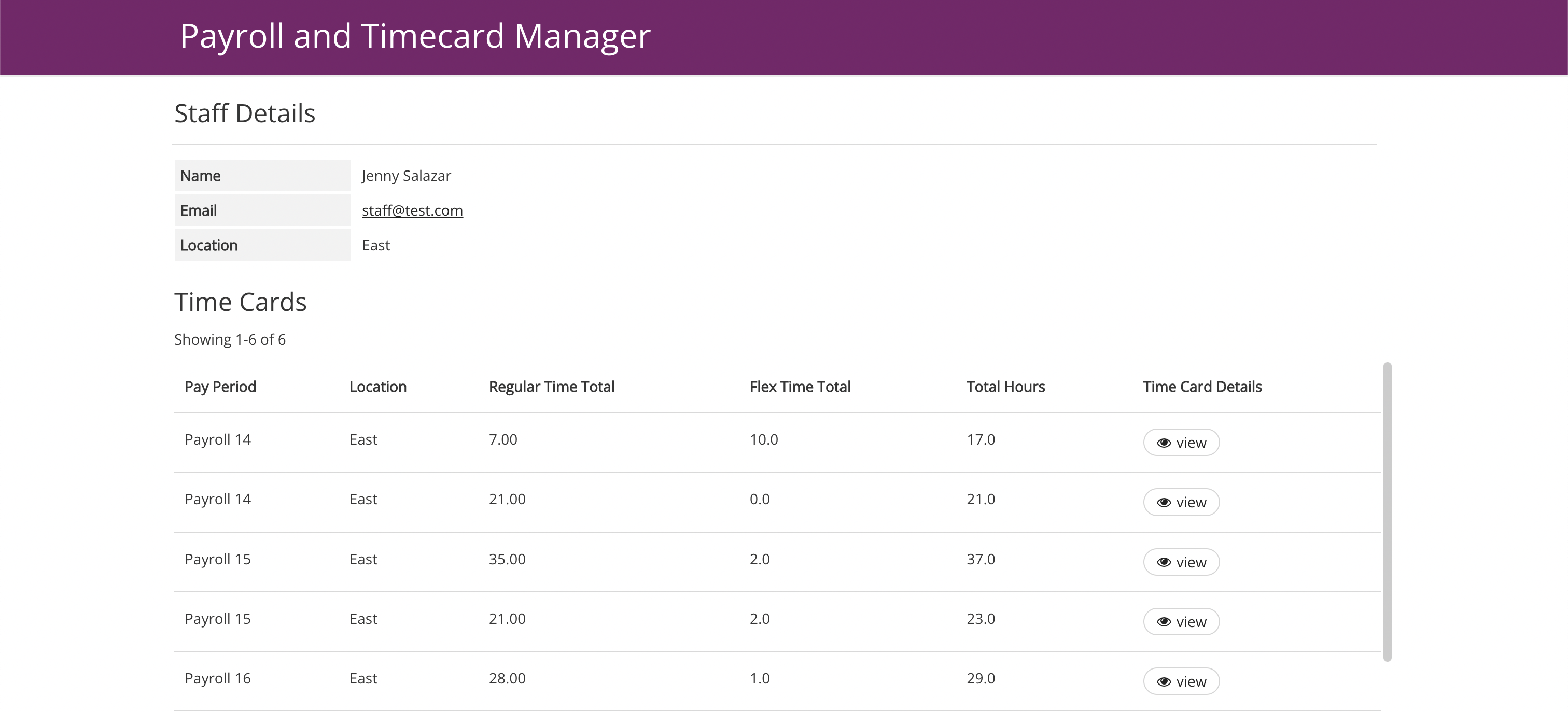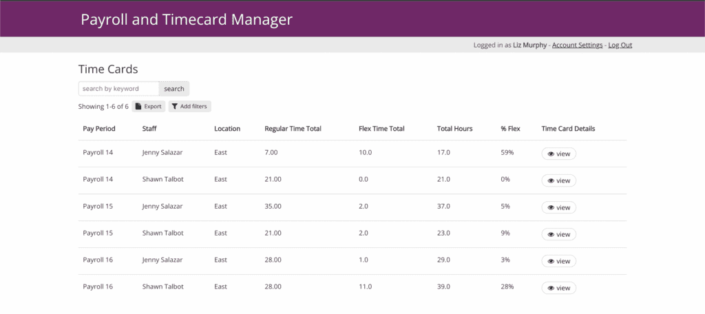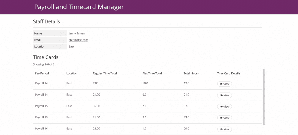 • Employee security – When each employee logs into the timekeeping portal, they will only see the data connected to their account.