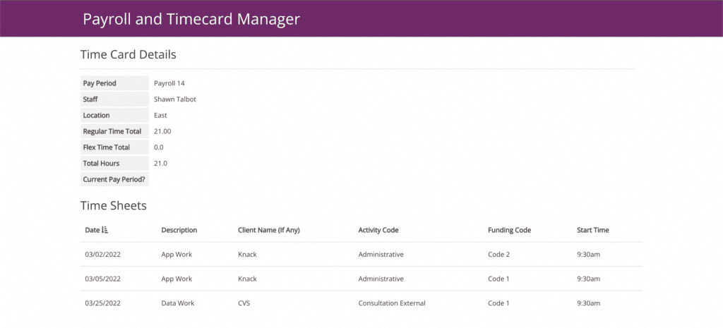 • Protect user data using a secure Knack app, ensuring each employee’s payroll data is kept confidential.