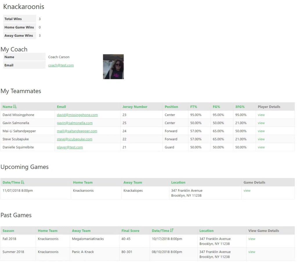 Coaches also log in to view their team’s information. The stats they care about are easy to find on the league app.