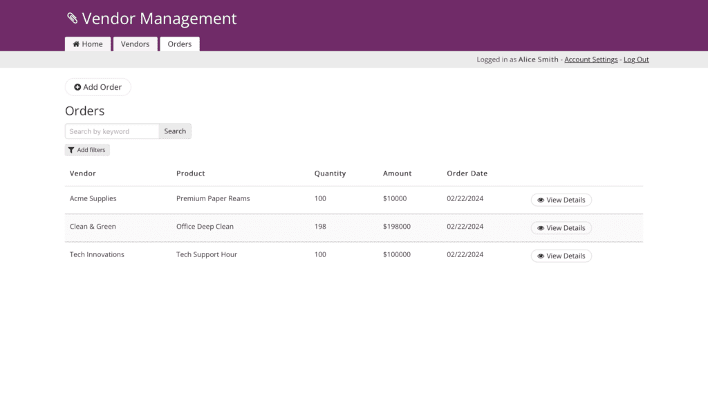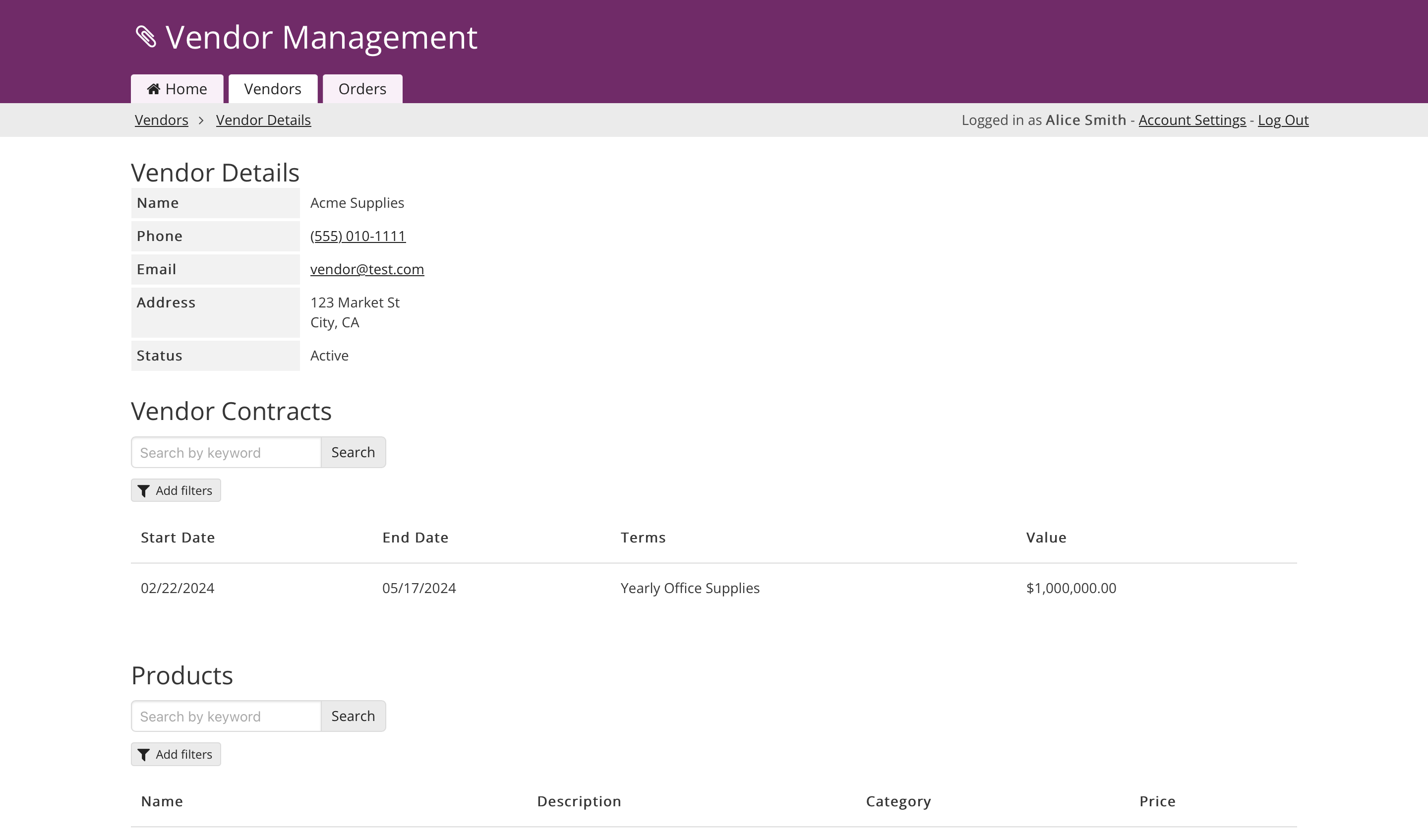 • Improved Data Security: Role-based access control ensures that sensitive vendor information is securely managed and accessed only by authorized personnel.